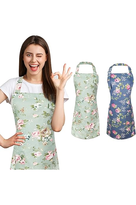 Funchaos 2 Stucke Kuchenschurzen Fur Frauen Blumen Schurzen Mit 2 Taschen Kochschurze Zum Kochen Backen Garten Premium Damenschurze Perfekte Geschenke Fur Mama Frau Freundin Oma Amazon De Kuche Haushalt Wohnen